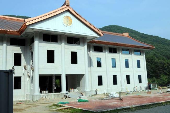 The building is of 80m long x 40m wide x 27 m high in 3 floor. Each story is large of 1,400 square m (m2). 설계 구상 담당 천진암박물관장 변기영 신부, 도면화, 구조 안전 계산, 및 인허가 담당 종합건축사사무소 보람 대표 문용진 소장. Basic design by Rev. Peter Byon Ki Young, draft into operation by Mr. Moon Yong Jin, head of Bo Ram Architects & Engineers CO., LTD.