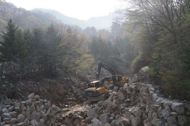 천진암 성지, 중심계곡, 한민족100년계획대성당 건립 아랫마당 氷泉담 하천의 수해방지 및 산림보호를 위한 7단계 평균 10m 폭에 15 m의 300m 길이(광암성당 마당 주차장에서 정면의 십자가 아래 지점까지의 자연석과 발파석으로 축조한 산림환경 사방지 공사가, 경기도산림환경연구소에서 공사비와 설계, 시공, 감리, 등을 직접 관장하여 실로 특출난 산림환경 사방지 공사(2014.04.05.25)를 완공하였습니다. 수고하신 관계자 여러분에게 두고두고 감사를 드립시다(산195-1번지 외).